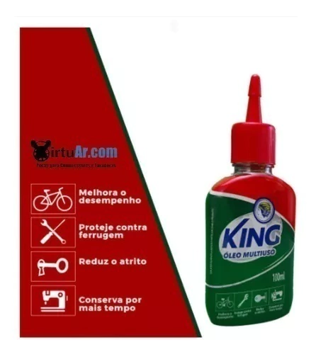 Diga adeus às dobradiças secas e barulhentas com o Óleo Lubrificante Multiuso King! Sua fórmula proporciona uma excelente lubrificação e por um período maior que a dos óleos comuns. Feito especialmente para ser usado evitando o desgaste de aparelhos domésticos, máquinas e motores industriais, dobradiças e etc., protegendo contra a oxidação e permitindo um funcionamento e desempenho melhores e duradouros.Recomendações de Uso:Aplicar algumas gotas nas superfícies a serem lubrificadas. Para uma melhor lubrificação, use-o com frequência.Composição:Óleo mineral lubrificante.Estamos a disposição para sanar dúvidas!!
